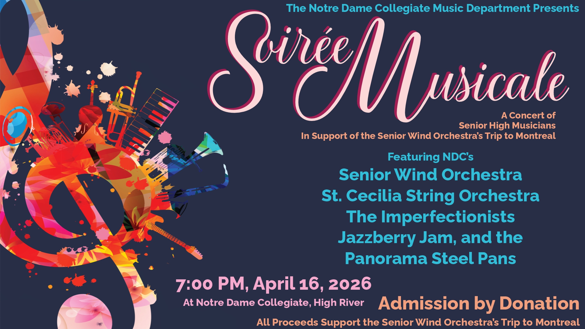 Therefore music education has as its most fundamental purpose the development of all students as lifelong musickers. Students engage in the activity of music-making, and learn through relevant contextualized musicking experiences to apply their musical abilities to their own identities and realities. In doing so students learn to love all of God's creation, regardless of background or experience, and interact with music to His glory. This is Music Education at Notre Dame Collegiate.